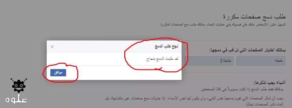 7- مبروك تم دمج صفحتك بنجاح انقر علي (موافق او Ok)